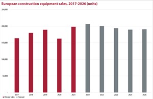 The widely reported high demand for equipment around the world, combined with long lead times for orders, means that Off-Highway Research expects further growth in European sales in 2022. The forecast is for a further 4 per cent growth, which would take the sales to within a percentage point of the previous record high, seen in 2007.