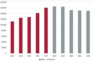 In 2017 the market enjoyed the rare phenomenon of all 15 of the individual countries considered in this report growing. This unusual occurrence of course indicates broad buoyancy in the European market, and at the current level of 160,000-165,000 unit sales, Off-Highway Research would argue that European demand is as strong as it can be without overheating.