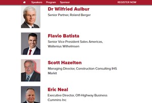 The presentation will be followed by a discussion with a panel of experts from the industry including Cummins Executive Director, Eric Neal, representing the views of components suppliers, Flavio Batista from shipping and logistics company Wallenius Wilhelmsen and Ken Taylor, who is president of the Associated Equipment Distributors (AED) trade association as well as president of one of the largest dealers in North America, Ohio CAT.